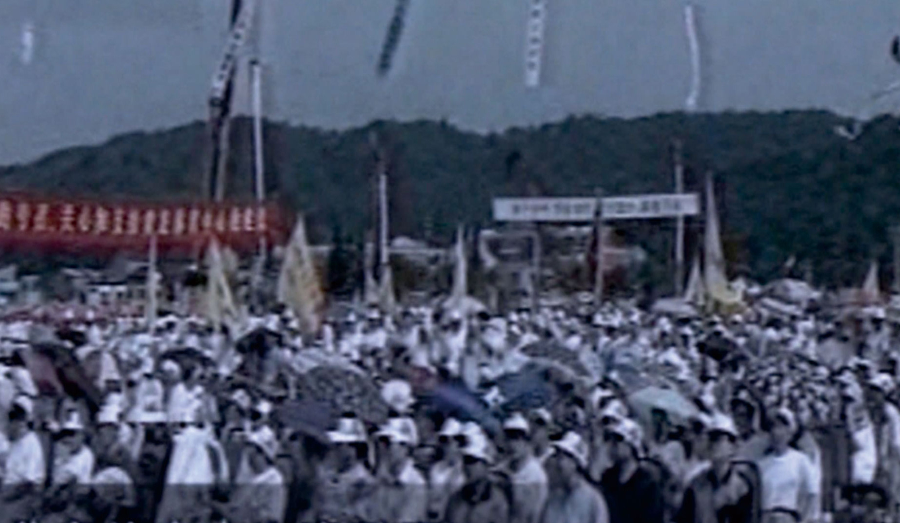 黄龙体育中心建设周边简易房屋已经耕田,记录还原早期体育馆周边样貌。