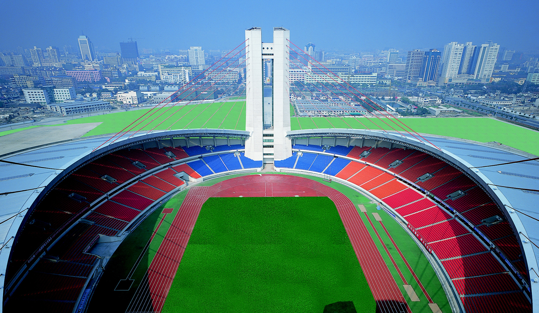10月,黄龙体育中心主体育场落成。这是一座建筑面积近10万平方米,投资约8亿,可容纳6万人的现代化体育场。