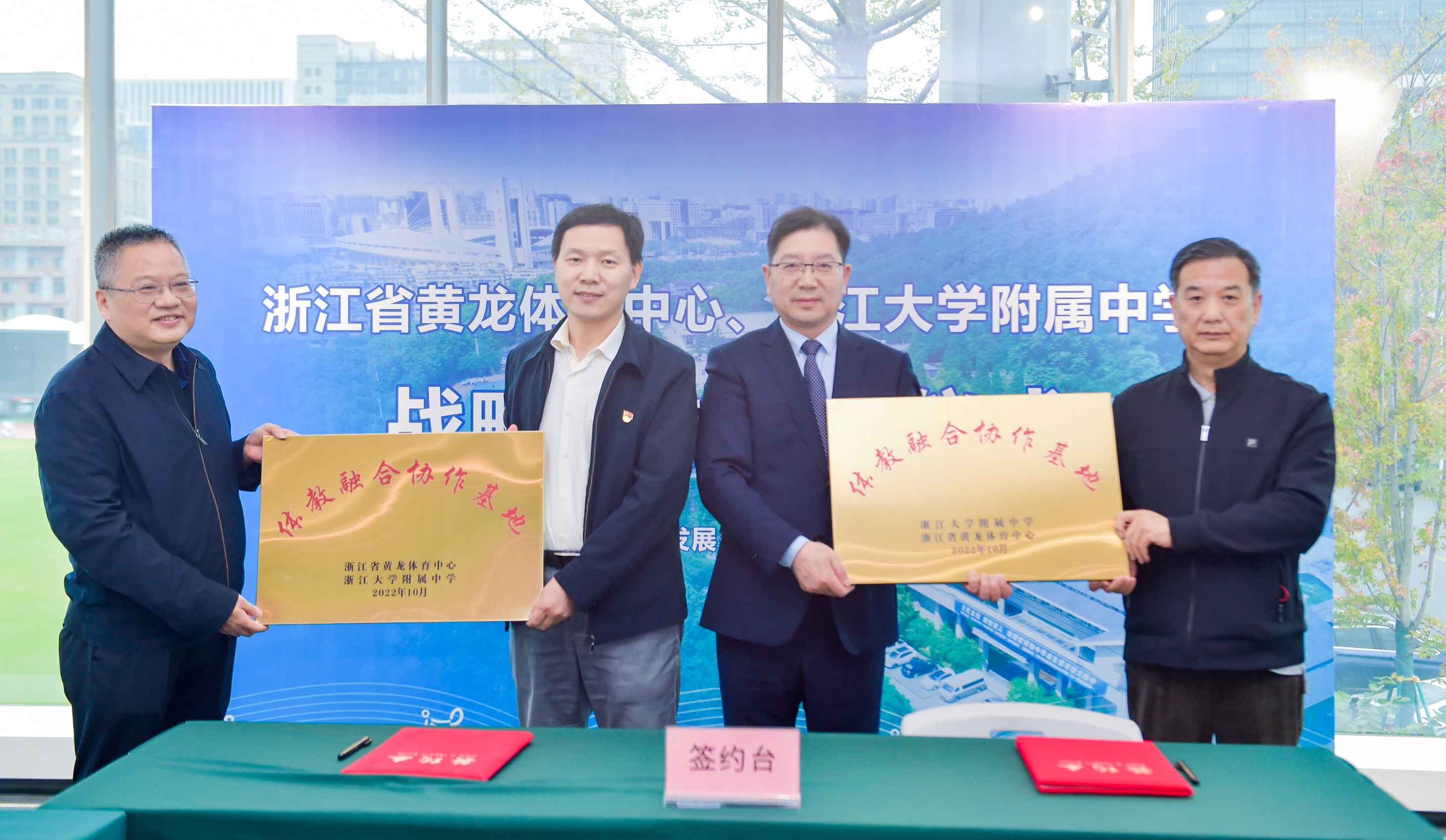 2022年10月27日,黄龙体育中心与浙江大学附属中学“体教融合”签约仪式在黄龙冠军楼举行。