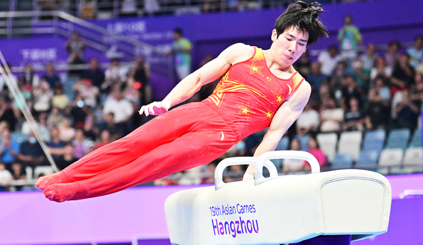2023年9月24日,黄龙体育馆迎来竞技体操比赛第一个比赛日,中国体操男子团体夺得冠军。