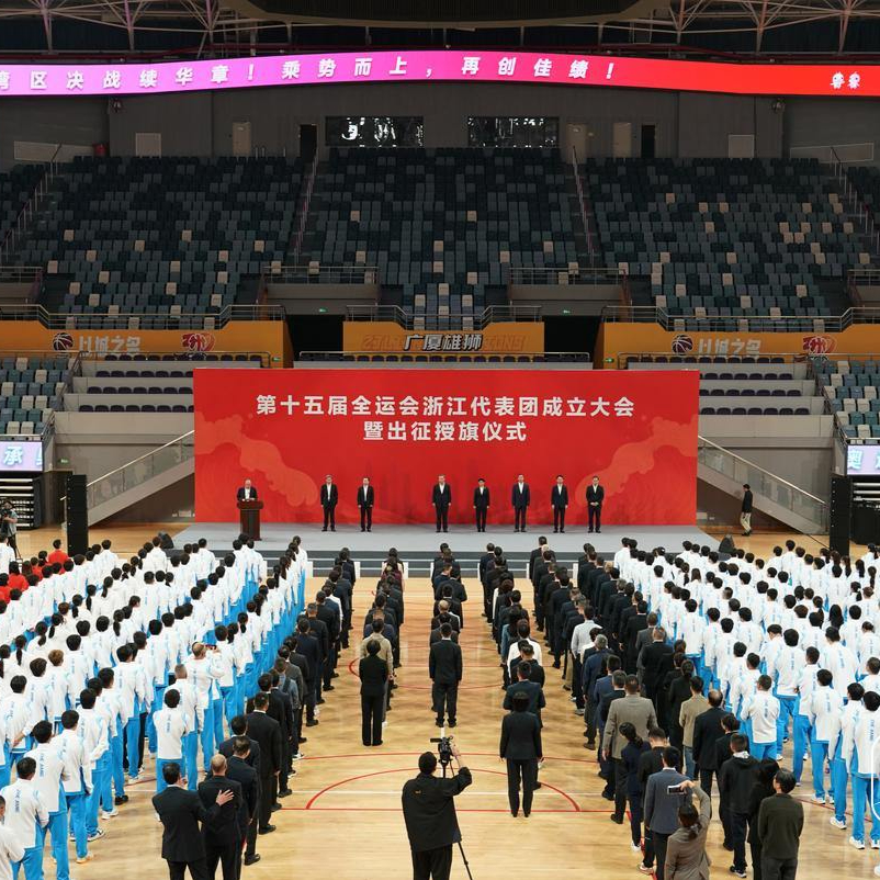 第十五届全国运动会将于11月9日在广州开幕。10月30日下午,第十五届全运会浙江代表团成立大会暨出征授旗仪式在省黄龙体育中心举行。