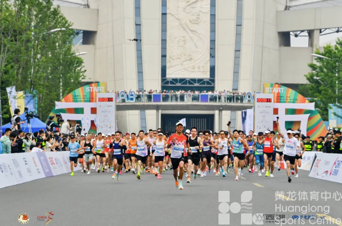5月25日上午,兴业银行·2025西湖半程马拉松在黄龙体育中心激情开跑。
