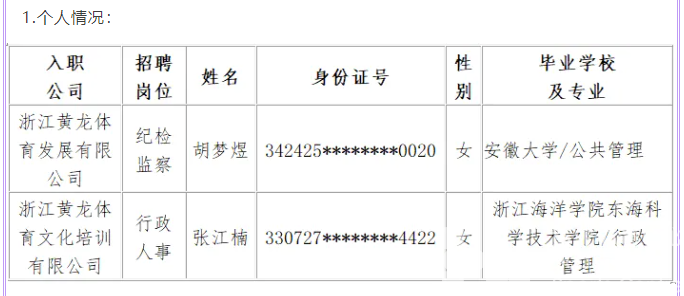 根据2024年7月22日《浙江黄龙体育发展有限公司及下属子公司公开招聘公告》,经报名、资格审查、笔试、面试和体检,现确定下列人员为我单位拟聘用人员并公示如下: