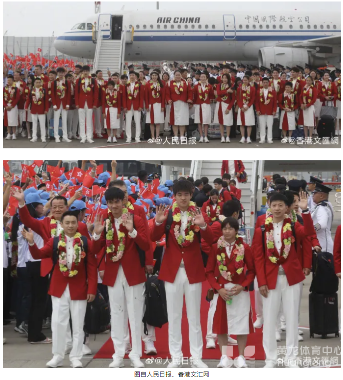 29日中午12时许,巴黎奥运会内地奥运健儿代表团乘坐飞机抵达香港国际机场,香港各界代表在机场举行欢迎仪式。随后,代表团将在香港展开为期3天的访问活动。