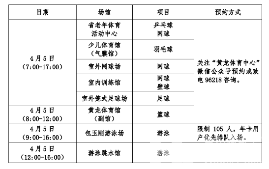 关于省黄龙体育中心2023年清明节场馆免费开放的通告