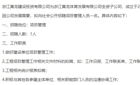 浙江黄龙建设投资有限公司公开招聘公告