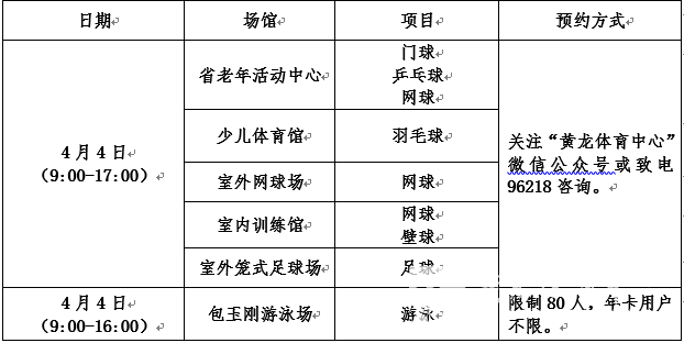 黄龙体育中心2021年清明节期间场馆免费开放安排