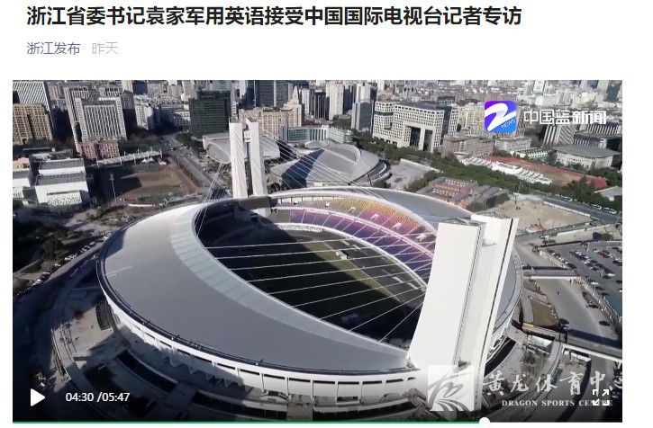 黄龙体育中心亮相中国国际电视台专访袁家军书记视频