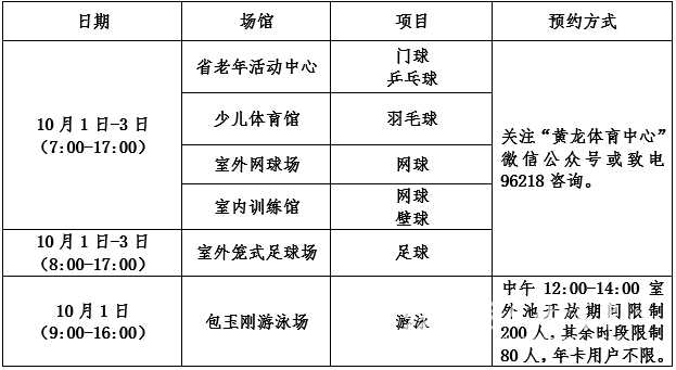 黄龙体育中心2020年中秋及国庆节期间场馆免费开放安排