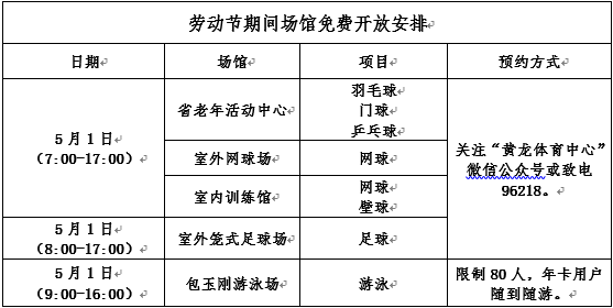 黄龙体育中心2020年劳动节期间场馆免费开放安排