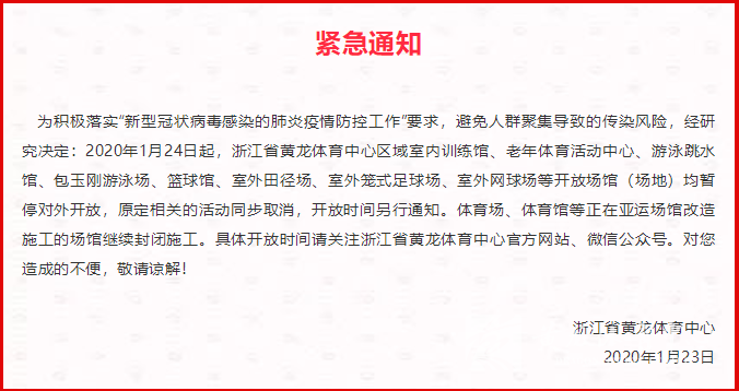黄龙体育中心2020年春节期间场馆免费开放安排