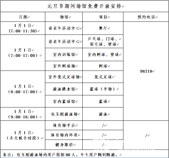黄龙体育中心2020年元旦节期间场馆免费开放安排