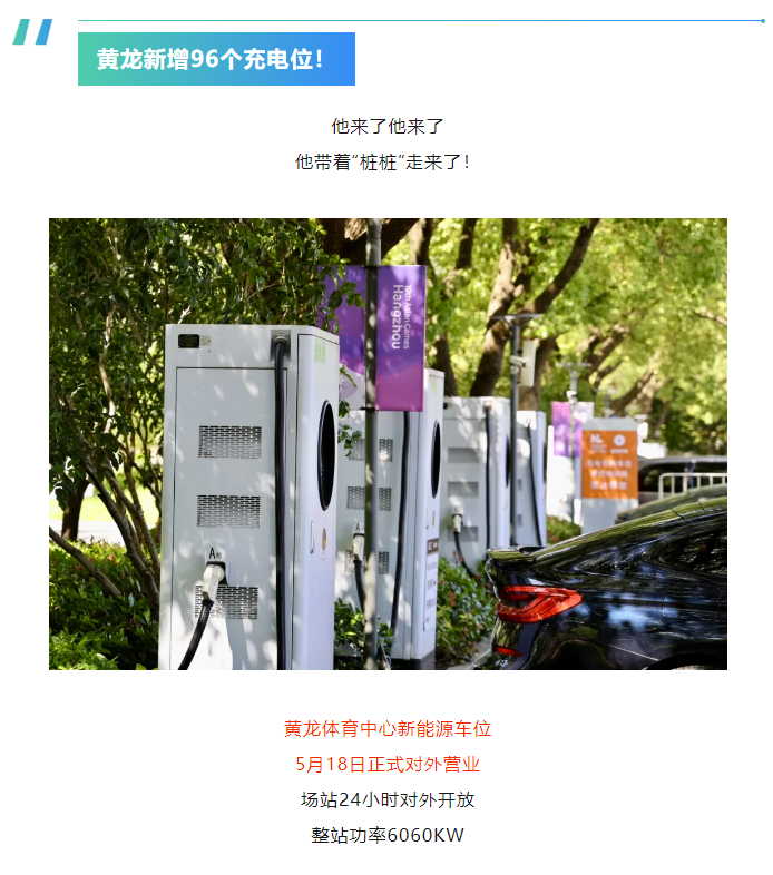新能源车黄龙充电来啦!96个车位/免费停车2小时/24小时开放