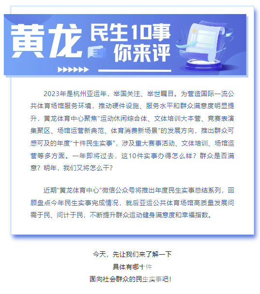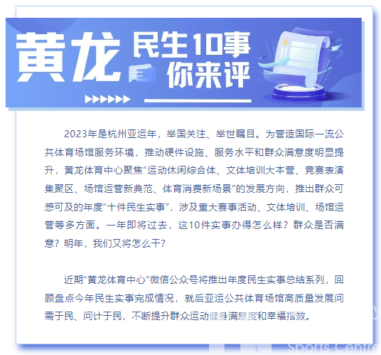 民生“10”事你来评 | 留言送徽章!黄龙的场馆服务你满意吗