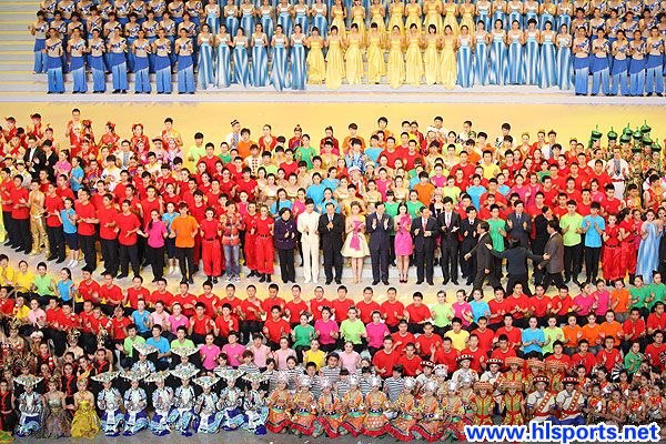 青春的旋律奏响人间天堂,艺术的花朵绽放西子湖畔。昨晚,全国第三届大学生艺术展演活动在杭州黄龙体育馆拉开帷幕。省委副书记李强致欢迎辞,教育部副部长郝平致开幕词并宣布开幕。省委常委、杭州市委书记黄坤明,副省长郑继伟,省政协副主席盛昌黎、徐辉,老同志张浚生,副市长陈小平等出席开幕式。市委副书记、市长邵占维代表承办方致辞。 来自全国31个省、市、自治区的大学生代表队,每队在20秒钟的时间内做一番表现各自省、市、自治区的特色展示。表演过后,掌声雷动。