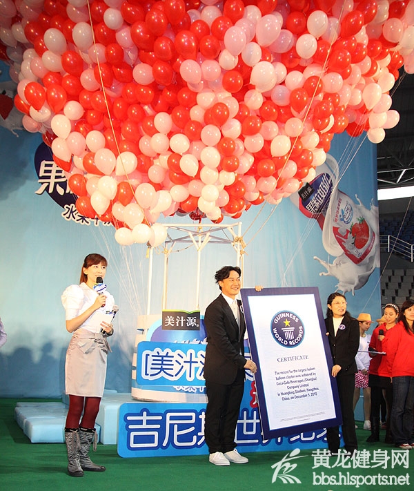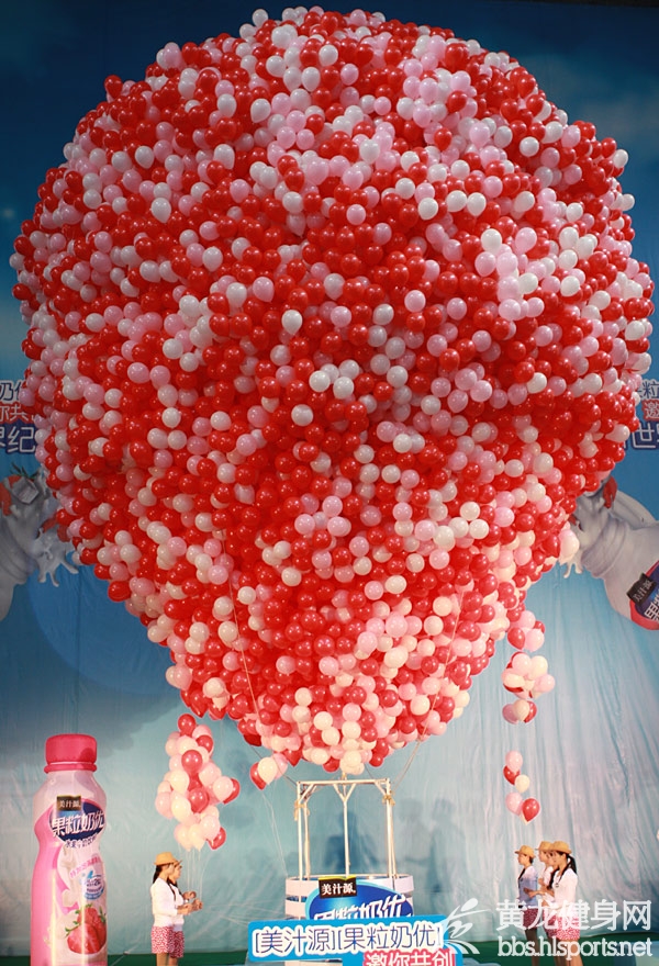 活动现场,这个由百万愉悦分享变身而成的的超级草莓型气球群,由2万个红、粉和白三种颜色小气球组成,最大直径达10米,整体高度相当于三层楼的高度,每一个气球都代表着近100条愉悦心情,极具视觉震撼。据可口可乐公司介绍,为保持气球群的完美结构与稳定升空力,整个结构仅设计方案就多达5套。在攻克包括风力、气体流失率和空气力学等技术难题之后,实体搭建耗时超过6个小时,由50多名专业技师连续作业完成。最终,随着本次活动的神秘嘉宾快乐天王陈奕迅与全国40名[美汁源][果粒奶优]幸运消费者将最后一批气球汇入气球群,一项全新的吉尼斯世界纪录正式诞生。陈奕迅还兴致勃勃地接受了主持人的终极挑战,第一个乘上气球群,感受这个超级“草莓”的愉悦升空力量。伴随全场的欢呼,缤纷巨大的气球群随着众人目光缓缓升空,将全场欢腾的气氛推向顶点。