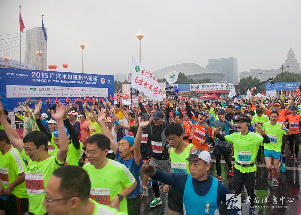 2015年广汽本田杭州马拉松,今晨在黄龙体育中心鸣枪开跑。秋雨潇潇,跑友们的热情丝毫未减。有着最美赛道的杭州马拉松,今天迎来了29岁的生日。杭马全程42.195KM,途径线路将杭城“一湖一江”展现在全世界眼前,是颜值最高的西湖跑步赛。雨中,最美的你,跑过最美的杭州。