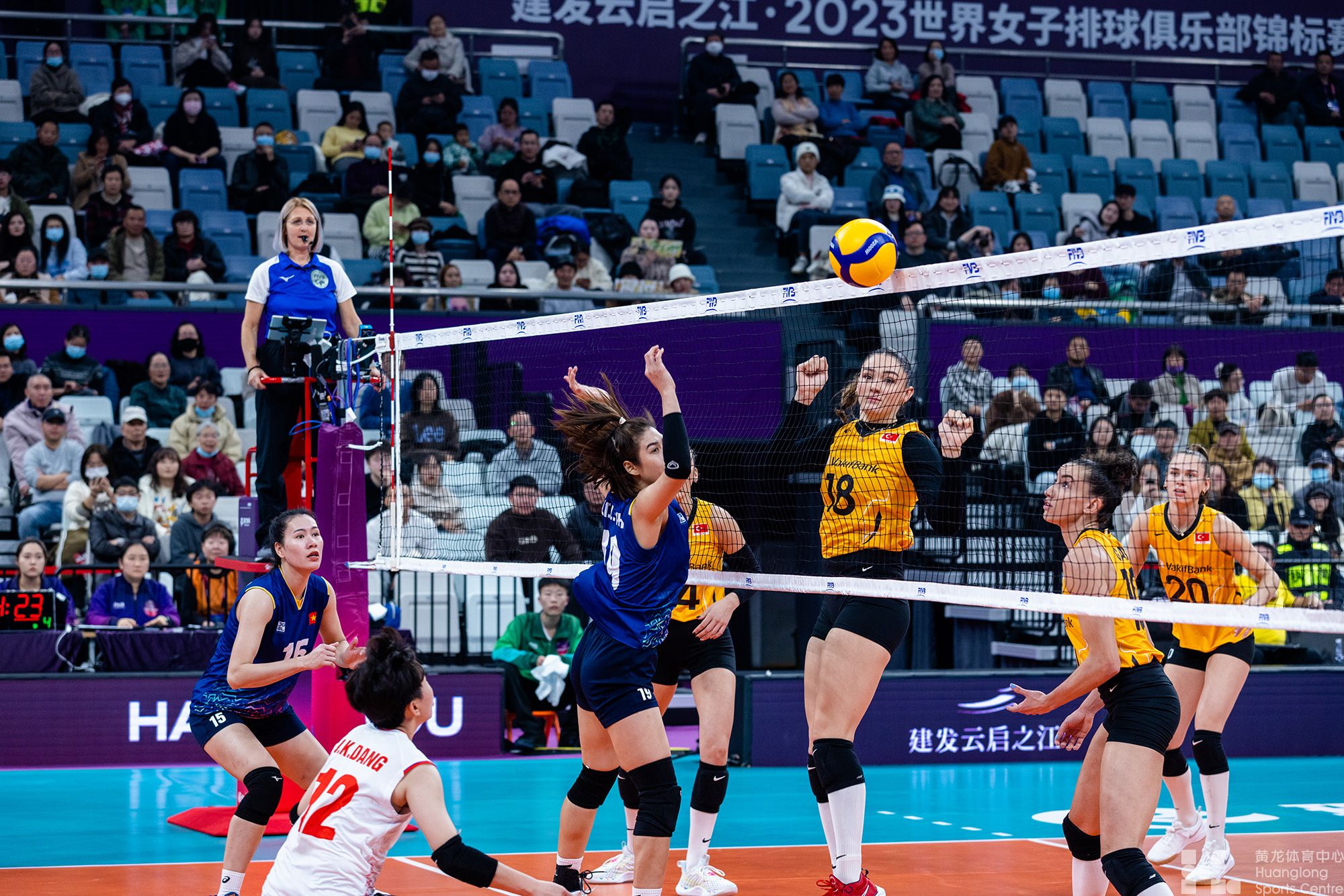 12月13日,2023世界女排俱乐部锦标赛首场比赛,在杭州黄龙体育中心体育馆结束,多次捧杯的土耳其瓦基弗银行队表现强势,3-0轻松击败了越南体育中心1号队,取得开门红。越南队的阮黄方翠拿到了全场最高的15分,成为本场比赛得分王。
