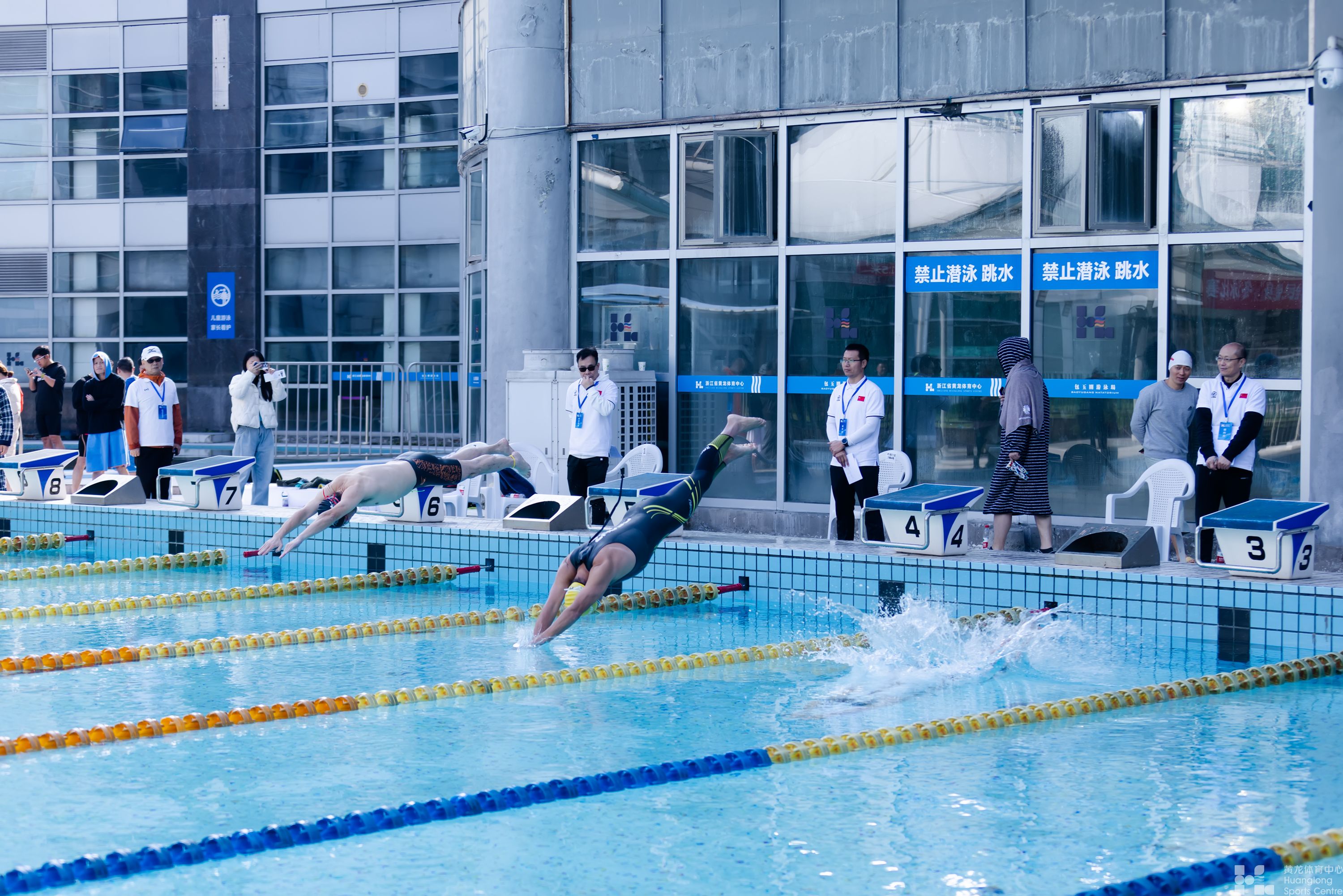今天一早,2024年浙江省黄龙体育中心第六届“全民健身”冬泳比赛在包玉刚游泳场举行!