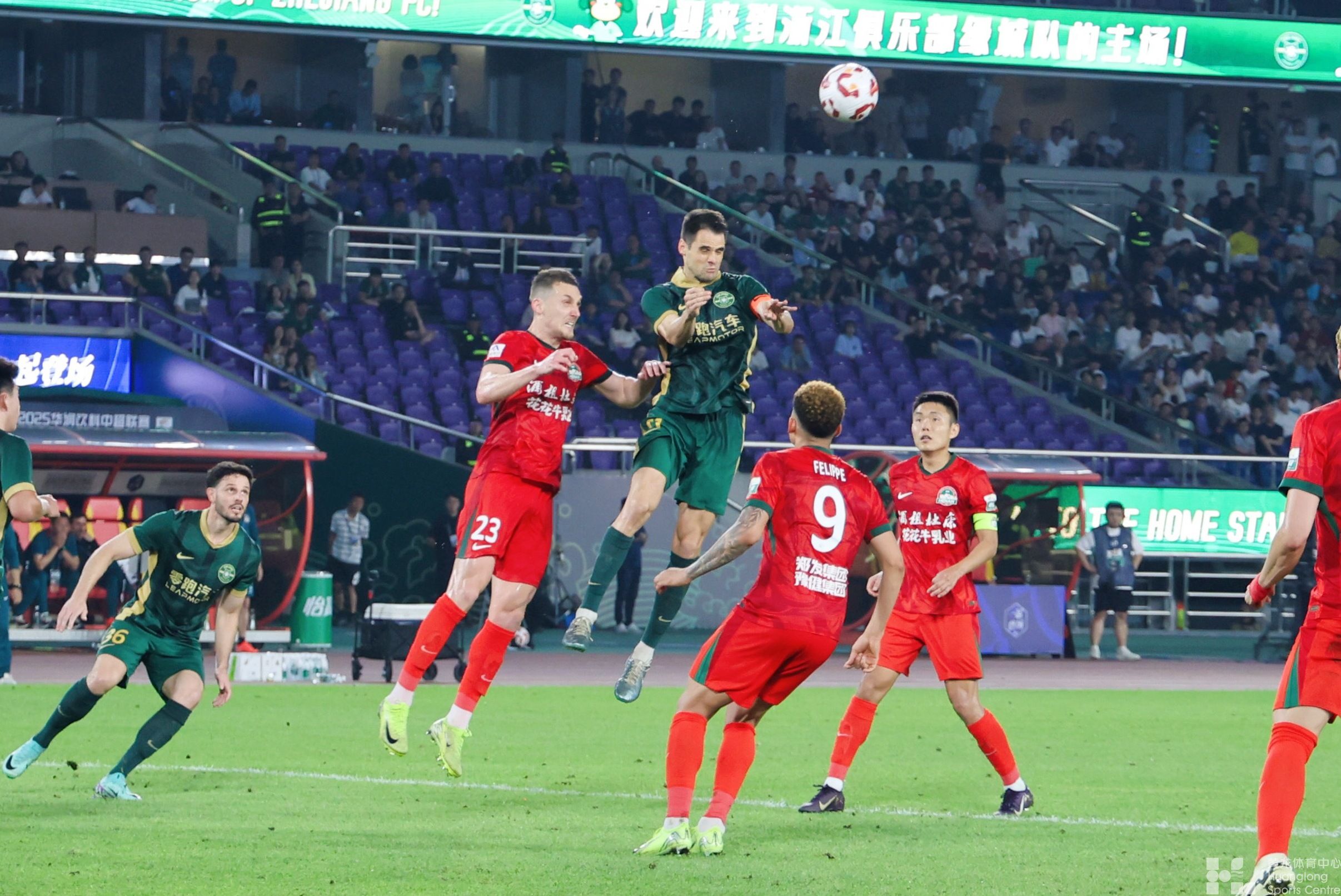 2025赛季中国足球超级联赛第13轮,浙江绿城队在主场浙江杭州2比2战平河南俱乐部酒祖杜康(下称河南队),陶强龙双响。河南队卡多索传射,刘鑫瑜绝平。